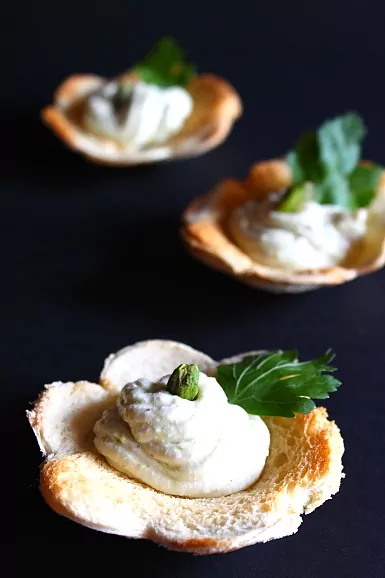 Tartelette cu mousse de gorgonzola și fistic